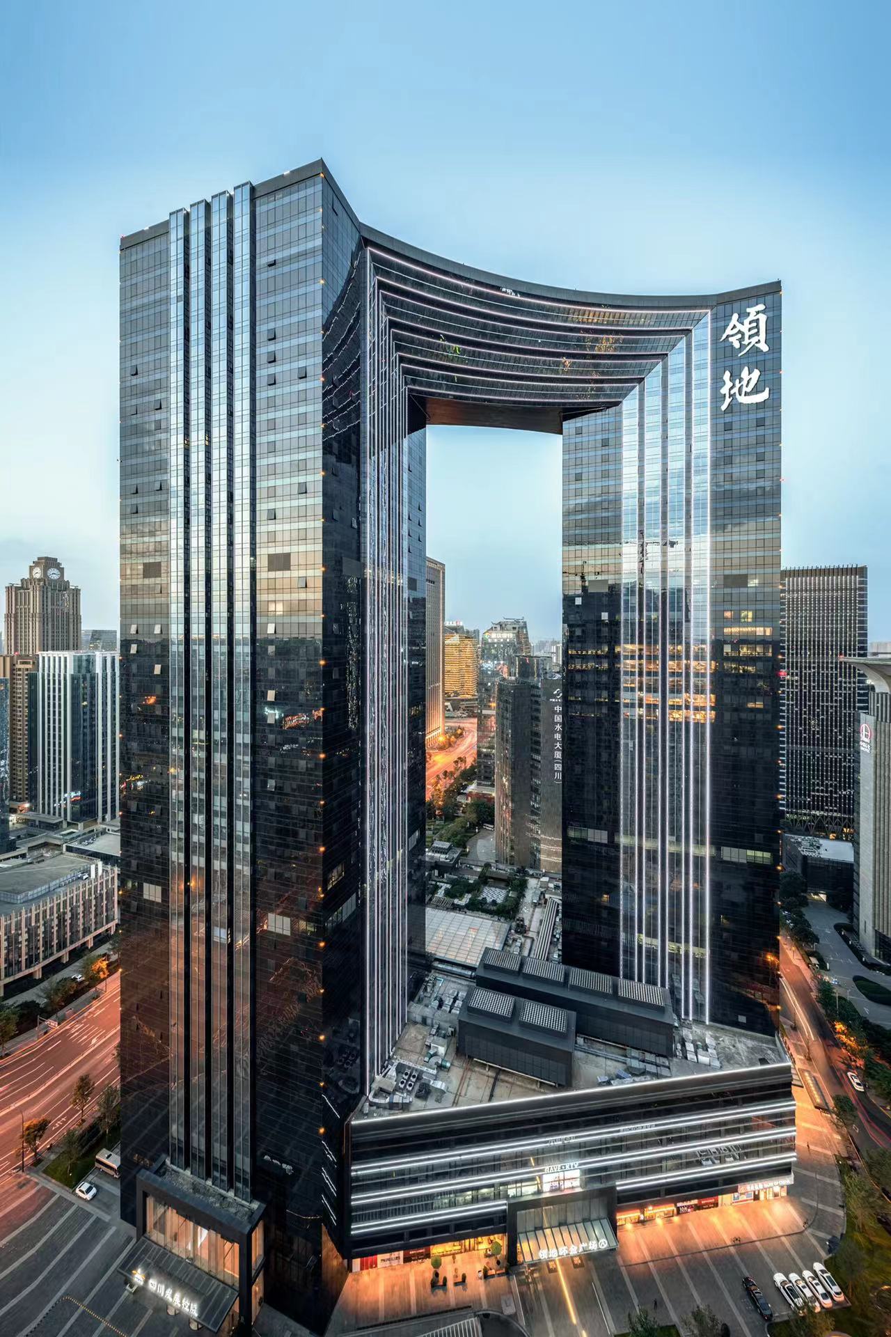 位于成都市核心地段,以鲁班奖标准精工打造,罕见的双子连廊式“黑钻凯旋门” 造型,如同矗立云端的天际门廊,重达 1200 吨,整体高度达到 206 米,其工程 难度可谓是西部之最。为区域内商务办公人群及消费群提供全方位的商务+生活 配套服务,以多元业态打造独特全时商务生活体验 MALL。